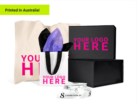 Elevate your unboxing experience with custom branded packaging. Printed in Australia in high quality CMYK + white ink.